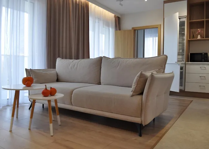 4Summer Golden Dune - Parking, Przestronne Mieszkanie 50M2, Caly Apartament Do Dyspozycji, Duzy Taras Z Pieknym Zachodem Slonca Parkplatz, Geraeumige Wohnung Mit 50 M2, Ganzes Apartment Zur Verfuegung, Grosse Terrasse Mit Wunderschoenem Sonnenunterga Kołobrzeg med 1 sovrum i i strandområdet, cirka 10 minuters bilfärd från Kołobrzeski Skansen Morski och bara 1 km från Stefan Żeromski Park. Den 50 m² stora lägenheten, som ligger i distriktet Dzielnica Uzdrowiskowa, har en privat trädgård.